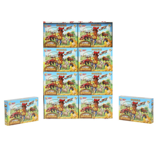Пазлы классические в коробке. 80 деталей. 130х90х25 мм, 'Суперферма', 368539