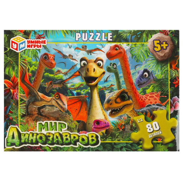 Пазлы классические в кор. 80 деталей. 130х90х25 мм, 'Мир динозавров', 374059