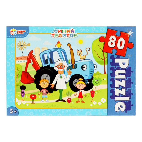 Пазлы классические в коробке. Пазл 80 деталей, Синий трактор, 322673