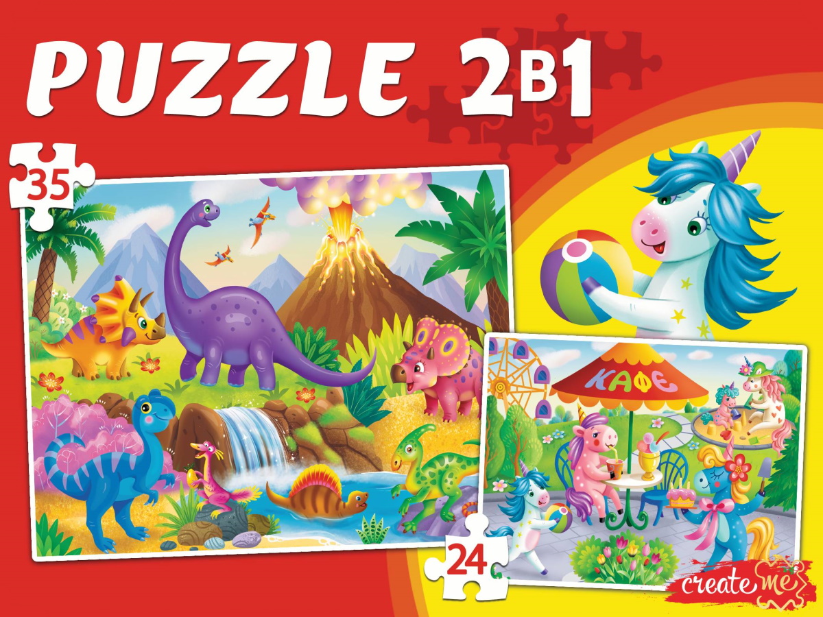 МАКСИ-ПАЗЛЫ 24 и 35 элементов 2 в 1. ПОНИ И ДИНОЗАВРЫ №1, ПМ24-35-8105