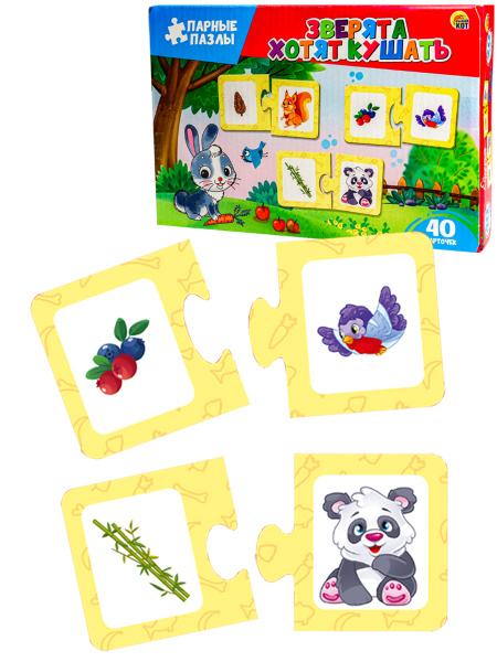 Парные пазлы. ЗВЕРЯТА ХОТЯТ КУШАТЬ, ИН-4256