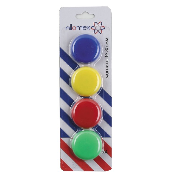 —Магнит для доски офисной 'Attomex' Ø 35 мм, 4 шт, цвета ассорти, 6021702