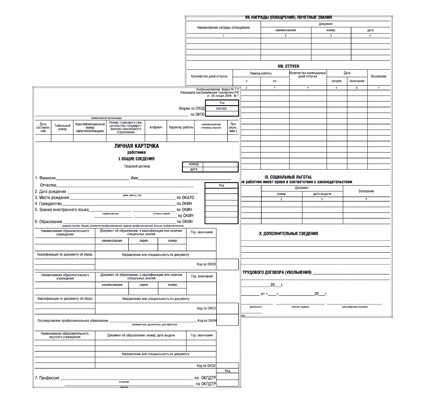 —Бланк 'Личная карточка работника Т2' А3 белый картон 100 шт, Т2белый