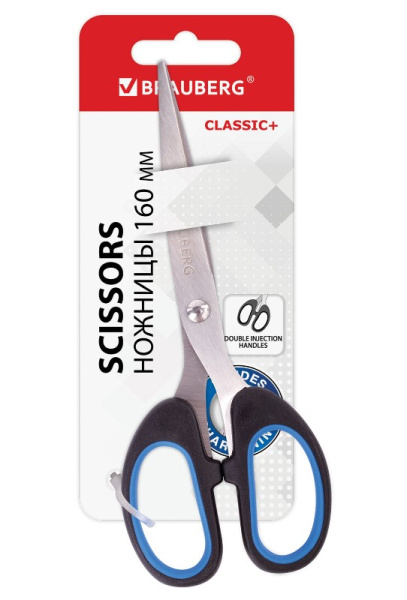 Ножницы Brauberg 'Classic+' 160 мм., черно-синие, резин. вставки, 236447
