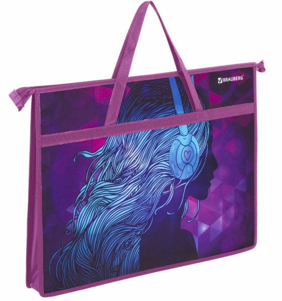 Папка для рисунков и чертежей с ручками BRAUBERG А3, пластик, молния сверху, 'Melody', 228201