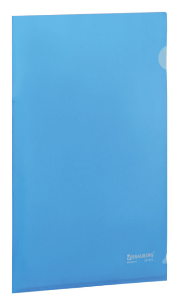 —Папка-уголок жесткая BRAUBERG, синяя, 0,15 мм, 221642