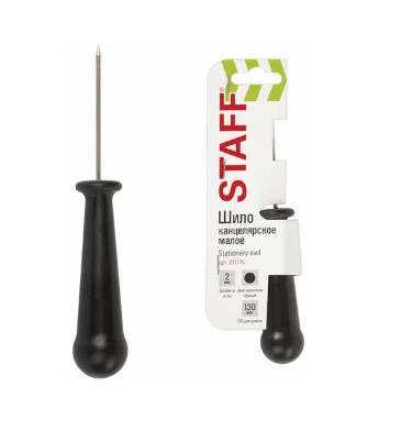 Шило с ушком, общая длина 145 мм, d=3 мм, прорезиненная ручка, STAFF, 238114