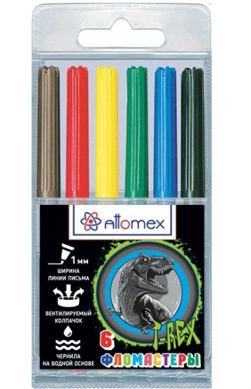 —Фломастеры 'Attomex. T-Rex Dino' 06 цветов с вентилируемым колпачком, 5080442
