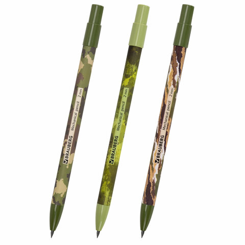 —Карандаш механический цанговый, 2 мм, 'BRAUBERG MILITARY', точилка, цвет ассорти, 181962