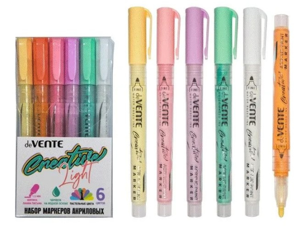 —Набор маркеров акриловых deVENTE 6 цв пастельных, ширина линии 1,5 мм., 5044304