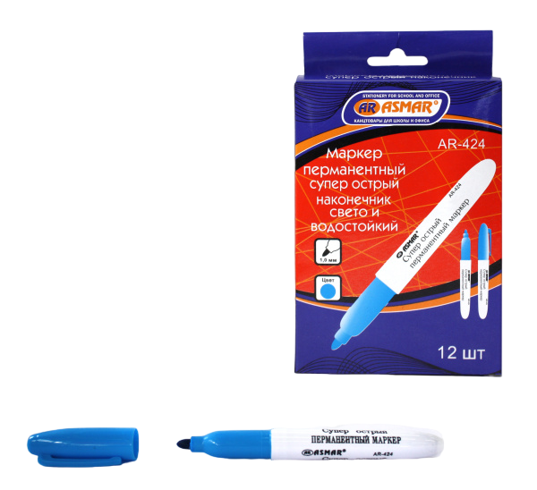 —МАРКЕР 'ASMAR' ПЕРМАНЕНТНЫЙ СУПЕР ОСТРЫЙ НАКОНЕЧН.ИК, ВОДОСТОЙКИЙ ГОЛУБОЙ