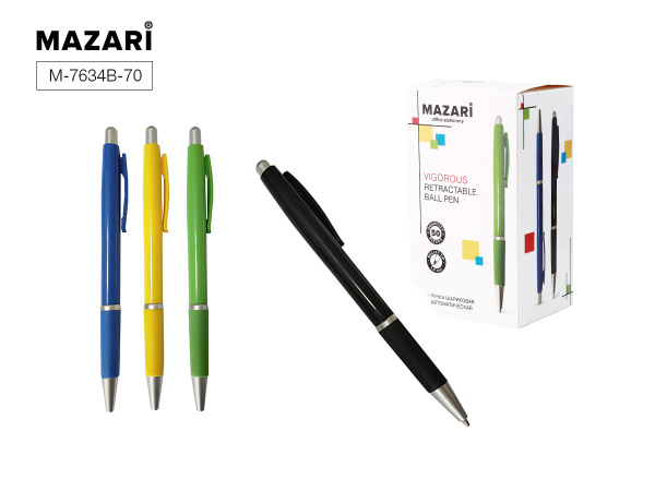 Ручка шариковая автоматическая VIGOROUS, СИНЯЯ, пулевидный пиш.узел 1.0 мм, M-7634B-70