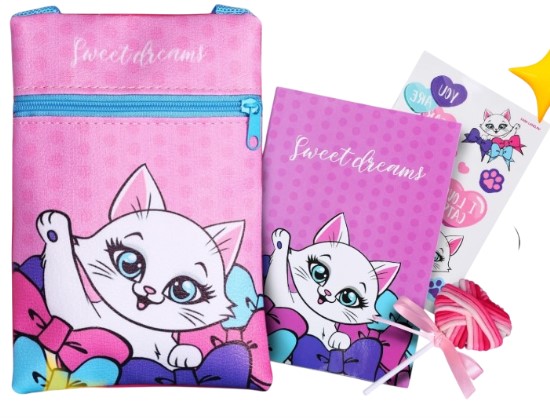 —Подарочный набор для девочки 'Котик' сумка, набор резинок, блокнот, тату, 9105073
