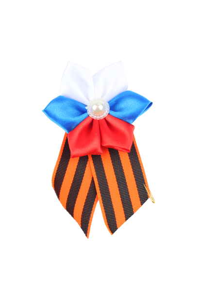 —Значок Брошь-3D 'Цветок триколор с жемчужиной' с обычной георгиевской лентой, 2911
