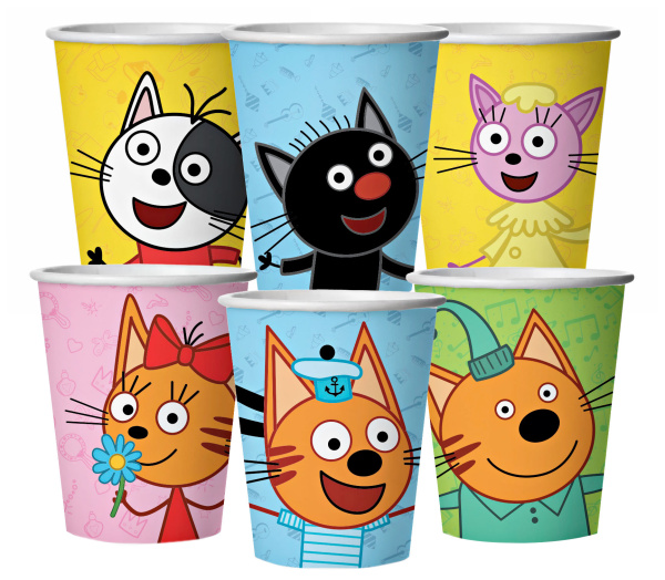 Стаканы Три кота, играем вместе 250 мл, 6 шт, 6014984