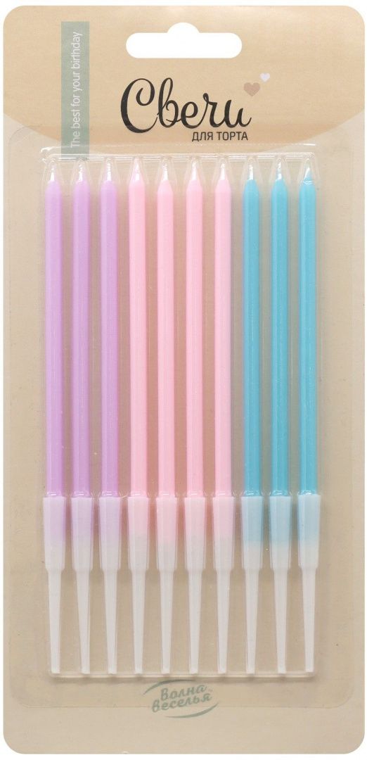 —Набор свечей для торта, Волна Веселья, Цветные, (10 шт;уп), 802929