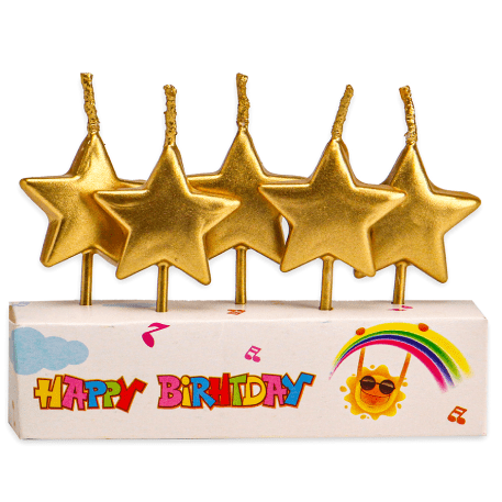 —Свечи для торта Миленд на пиках Золотые звездочки, 5 шт, пластик уп., С-2542