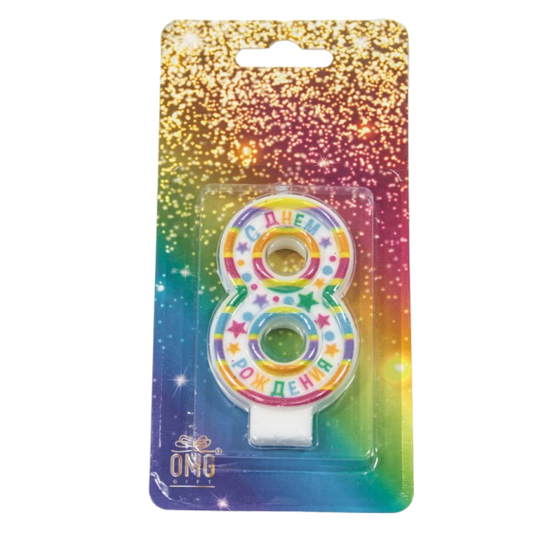 —Свеча для торта 'Цифра 8', С днём рождения , 6 см, картон. уп., европодвес, ОМ-20010-29;8