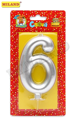 —Свеча для торта 'Цифра 6. Серебряный металлик' Миленд, картон. уп., европодвес, С-1878