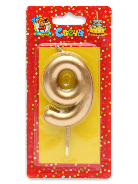 —Свеча для торта 'Цифра 9. Золотая' Миленд, картон. уп., европодвес, С-1807