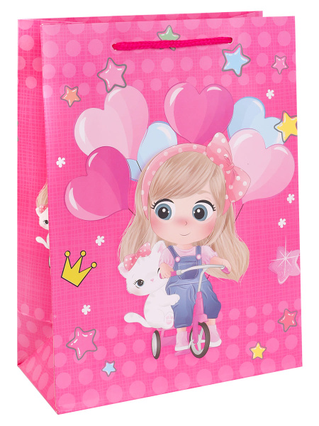 —Пакет подарочный Dream cards 'Девочка с котёнком' 18х23х10 М матовая ламинация ПКП-3116