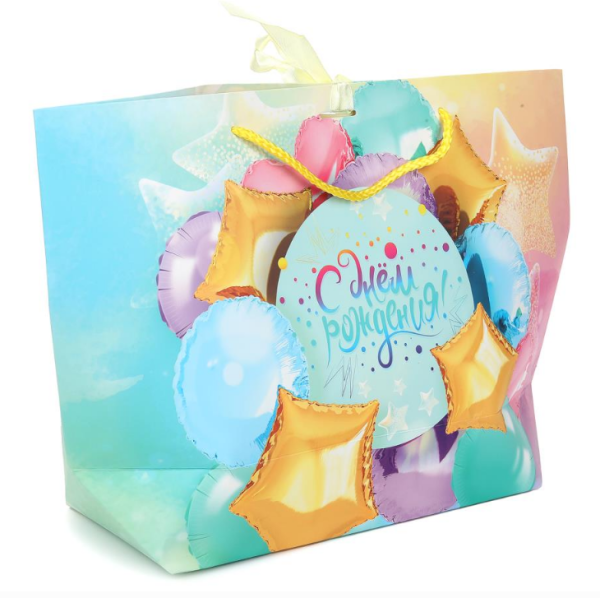 —Пакет-сумка, звезды, с днем рождения,м,190 гр;м2, ЧУДО ПРАЗДНИК, 390087