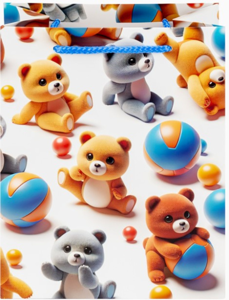 —Пакет подарочный с мат. лам. 26х32х12 см (L), Медведи с мячами, 210 г;м2, ППК-7577