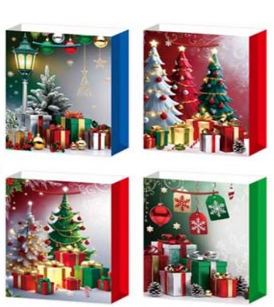 —Пакет подарочный бумажный НГ 26х32х10 см, 4 дизайна в ассортименте, M-8255