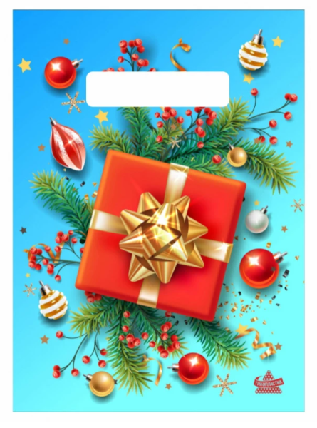 —Пакет ПЭ с вырубной неусилинной ручкой 19х25см (30) (Красный подарок),ВНР53351