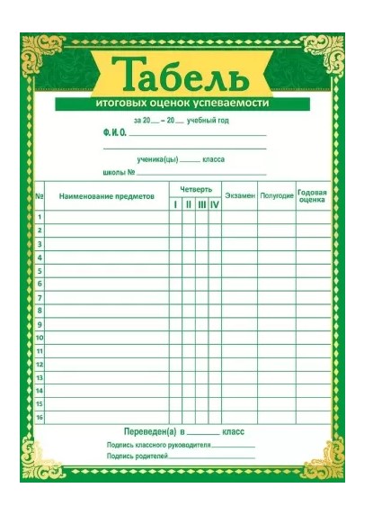 Табель успеваемости
