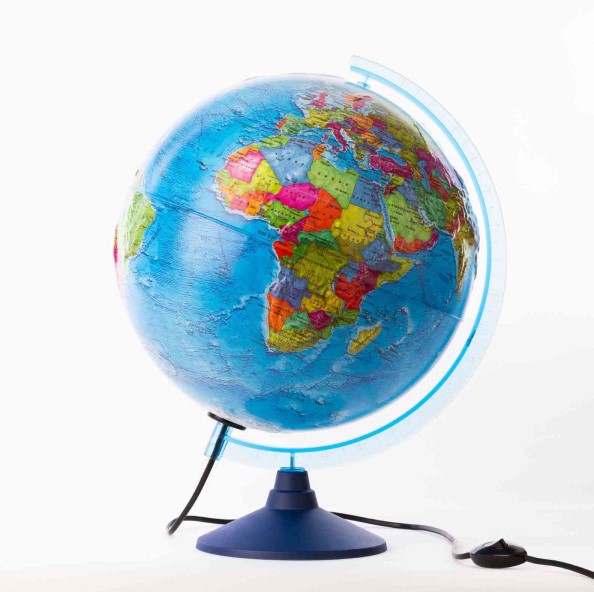Глобус Земли Политический Рельефный (210 мм с подсветкой), евро, КЕ022100202