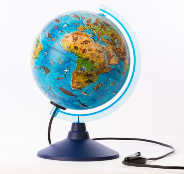 —Глобус Зоогеографический Детский 210 мм с подсветкой от батареек . Классик Евро, Ве012100249