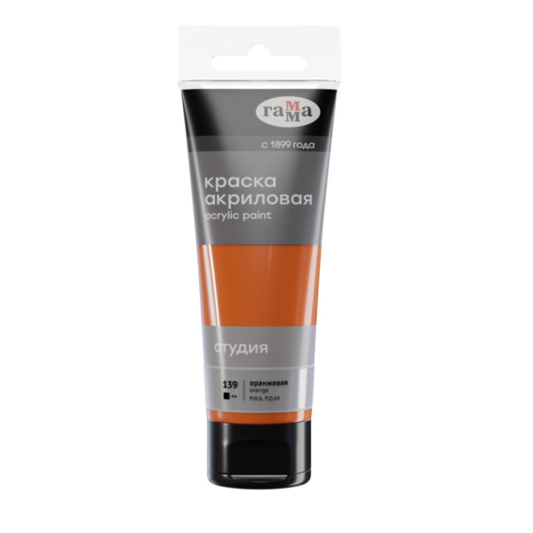 —Краска акриловая художественная Гамма 'Студия' оранжевая, 75мл, 280220139