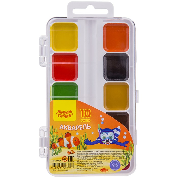 —Акварель Мульти-Пульти 'Енот в Красном море', медовая,10 цветов, без кисти, пластик, евр. АП_10704