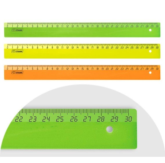 Линейка 30 см СТАММ, пластик, неоновые цвета,ассорти, ЛН-31437