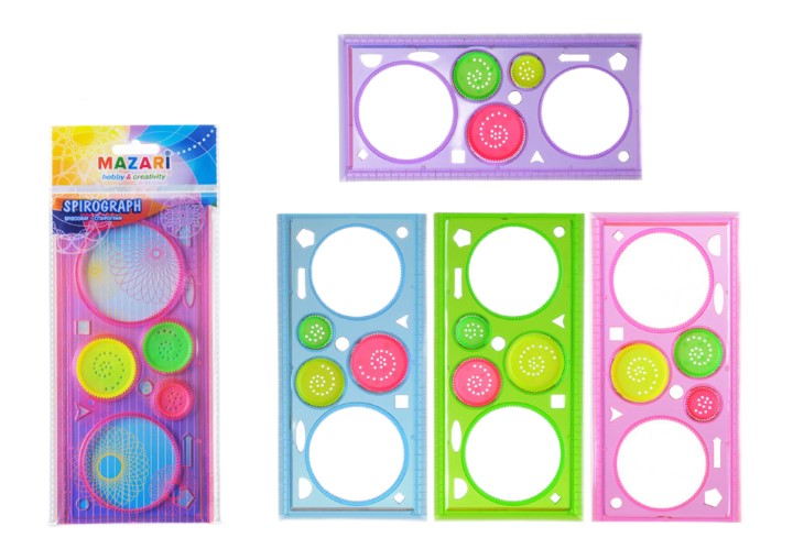 —Спирограф, в комплекте- линейка-калейдоскоп 20 см, 3 круглых вкладыша разного размера, M-5569
