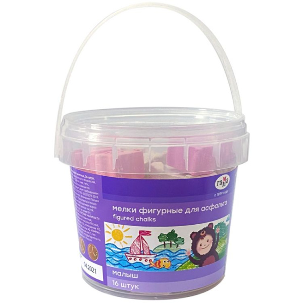 —Мелки для асфальта Гамма 'Фигурные', цветные, 16 шт, пластикое ведро, 150220217
