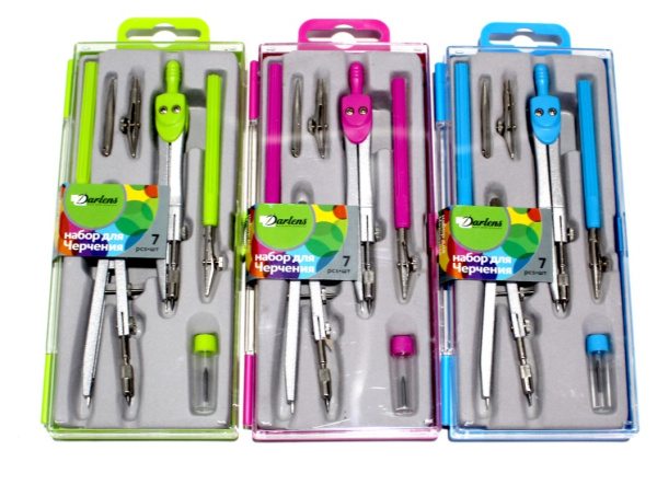 —Готовальня DARLENS, металл, 7 предм., 120 мм, ассорти, DL-DRL00092