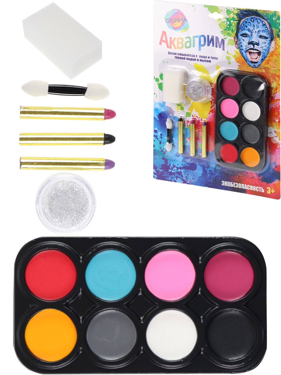 Набор аквагрима для детей- 8шт,каран-3шт,гель для тела и лица-1шт,спонж-1шт,апплик-1шт, КС-3600