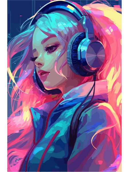 Алмазная мозайка (классич.) 20х30 см, на картоне (20 цв.) 'Музыка в наушниках', НД-0977