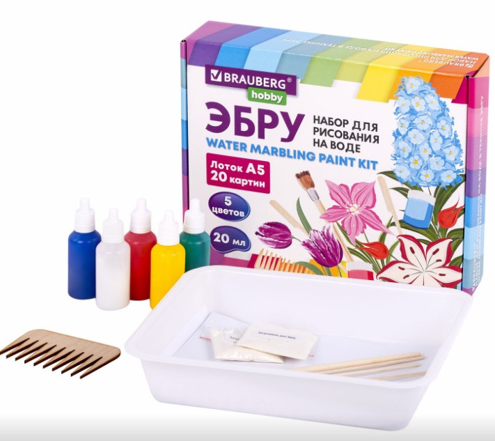 ЭБРУ набор для рисования на воде 5 цветов по 20 мл (20 картин), лоток А5, BRAUBERG HOBBY, 665353
