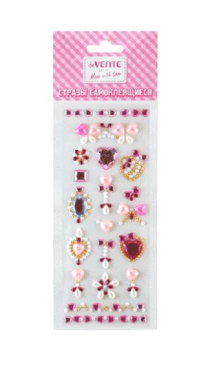 —Стразы самоклеящиеся 'deVENTE. Сердечки' акриловые, карточка 7,5x18 cм, цвета ассорти, 8004019