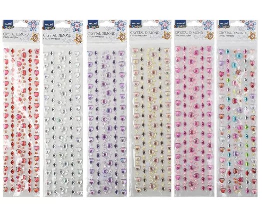 —Стразы-наклейки акриловые АССОРТИ-11, 31х8 см, 7 дизайнов, ОПП-упаковка с европодвесом, M-8661